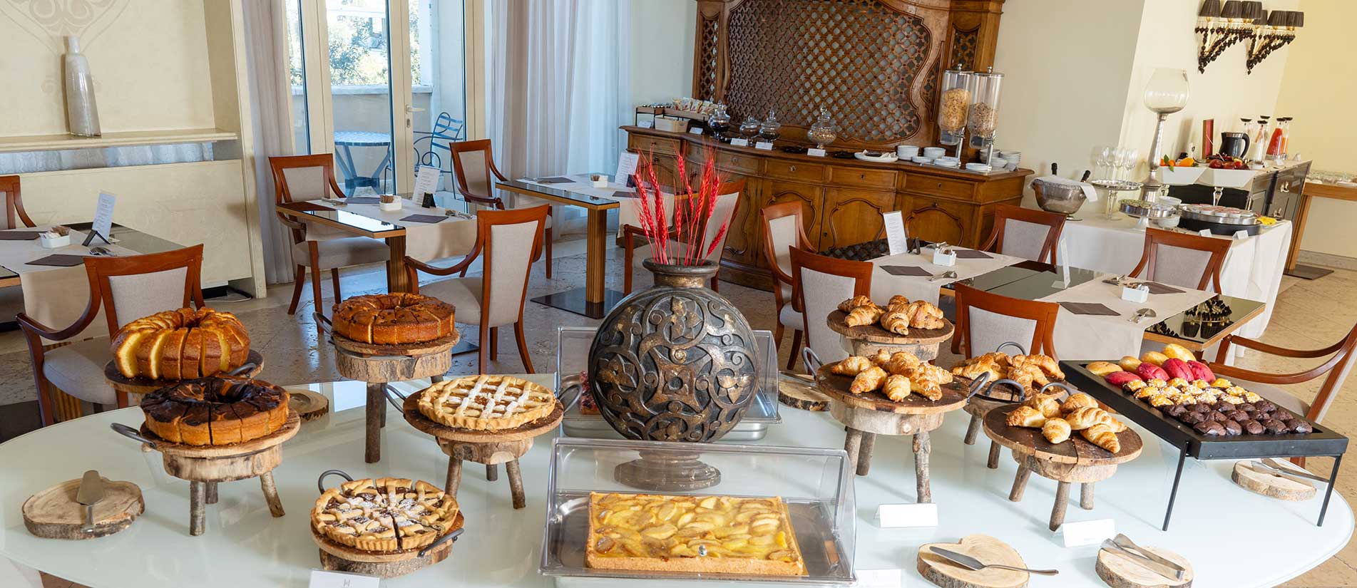Dalla mattina e fino a tarda sera, a disposizione degli ospiti per pranzi e spuntini veloci, ricche colazioni, cocktail internazionali e pregiate selezioni di vini, the tisane accompagnate dai dolci sfiziosi preparati con maestria dallo chef patissiere dell'Hotel.